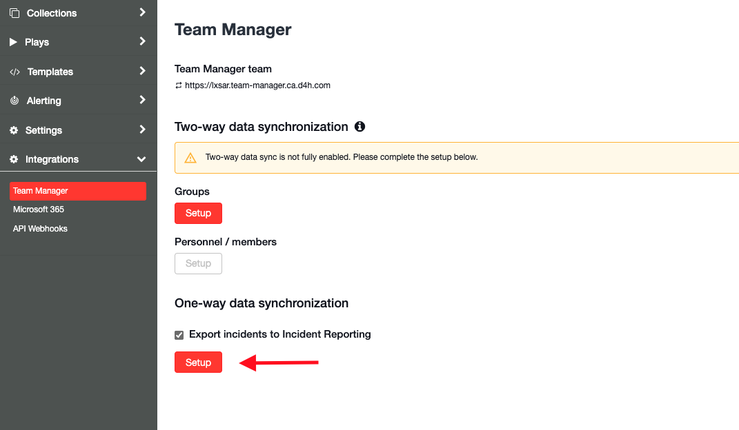 ⚠️ ATTENTION: Both D4H Operations Center and Team Manager platforms must be residing in the same region in order for the synchronization to be successful. If your account is not residing in the same region, please drop us a request to help@d4h.com to migrate your account to the correct server and we will then share the next steps.